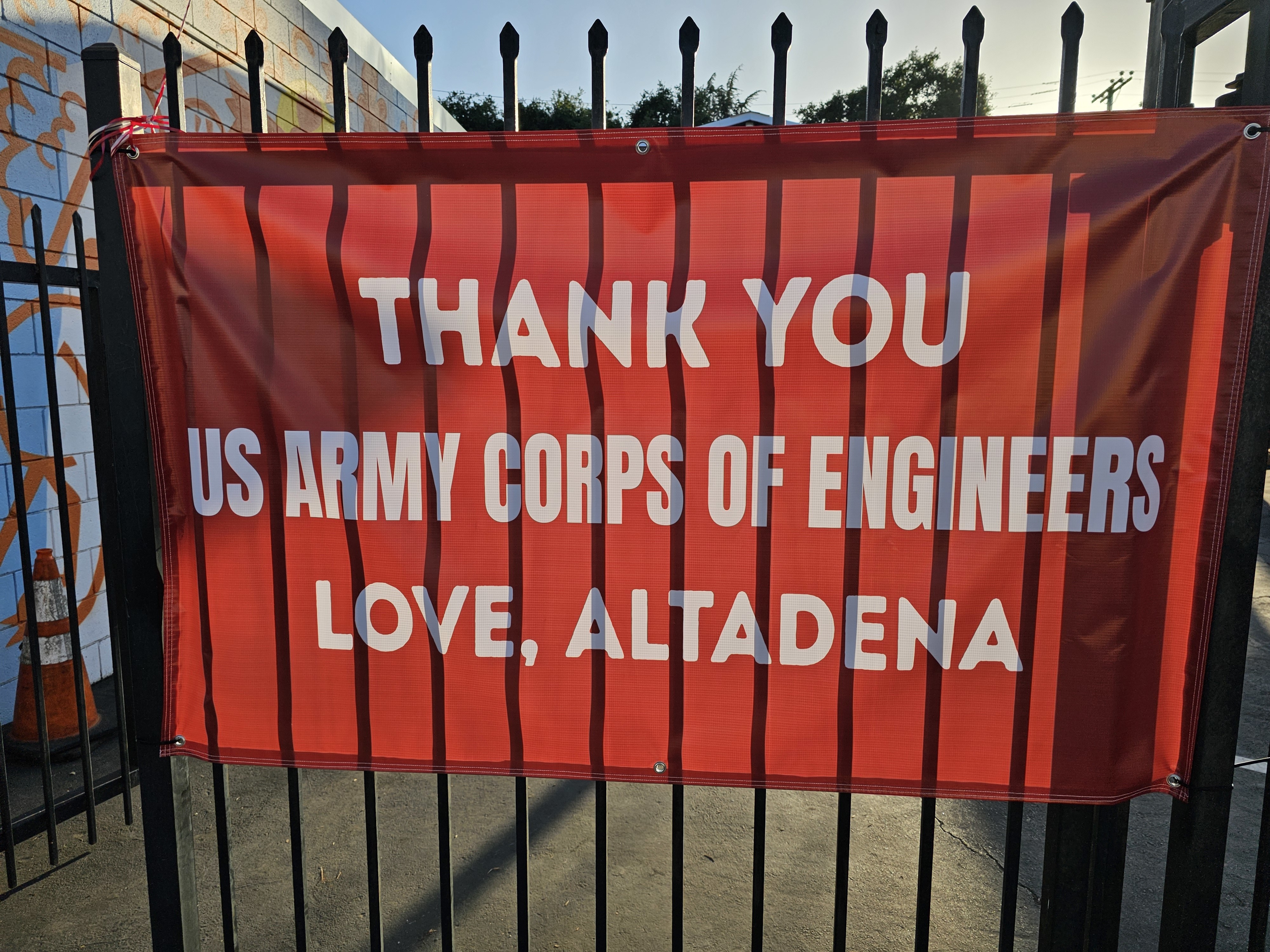 A sign in Altadena, Calif., June 18, 2025. It is one of many similar signs Christopher Zayas saw throughout Altadena in support of the USACE Southern California wildfires recovery mission after wildfires burned parts of Los Angeles in January 2025. Zayas said this particular sign was presented during a meet and greet thank you ceremony hosted by community leaders and residents. Photo by Christopher Zayas.