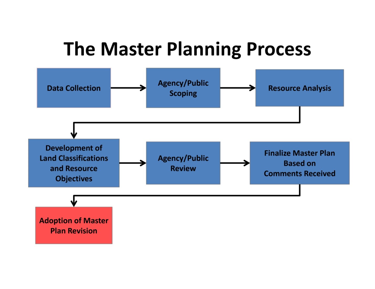 The Master Plan is the strategic land use management document that guides the comprehensive management and development of all project recreational, natural, and cultural resources throughout the life of the water resources project.